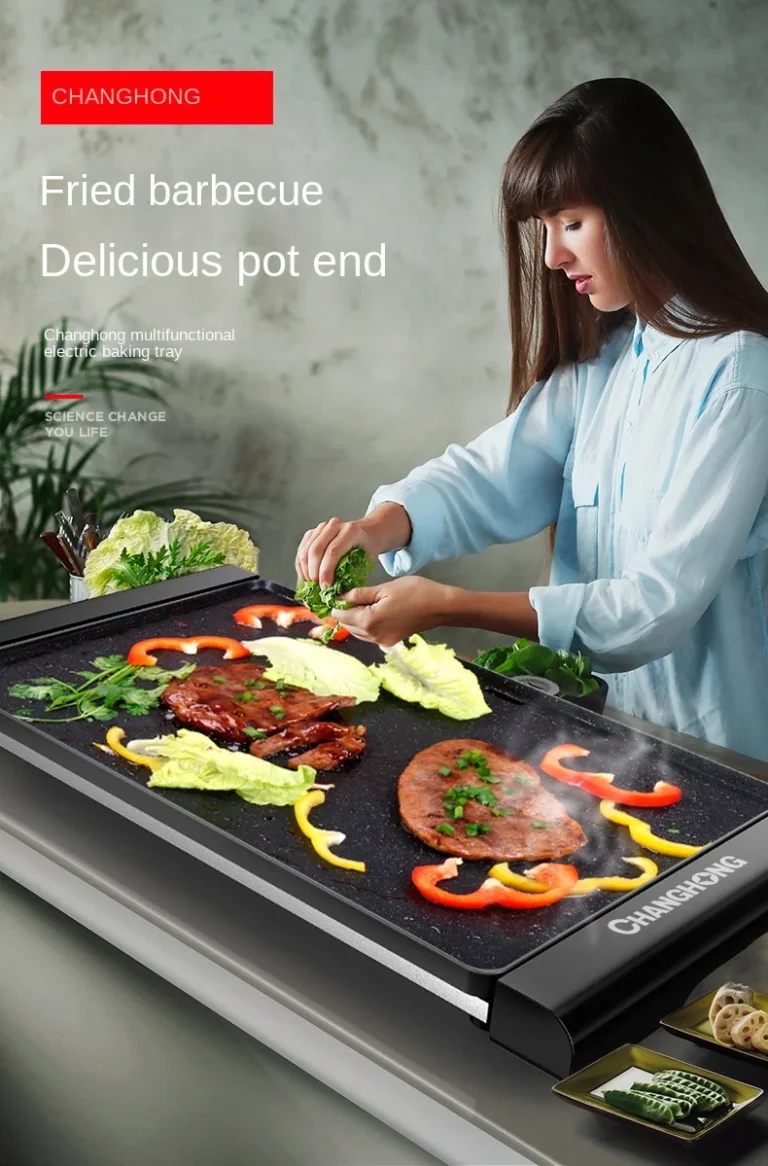 Multifunction Electric Frying Pan Househould Barbecue Roast Pan Fried Steak Fish Omelette Skillet Non-Stick Grill MultiCooker