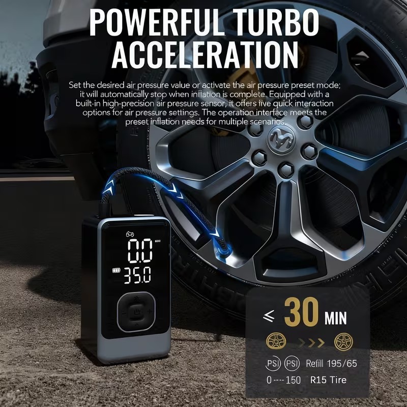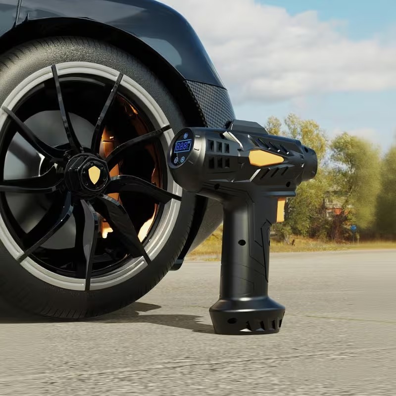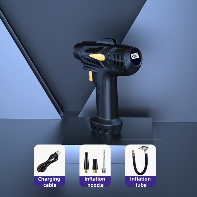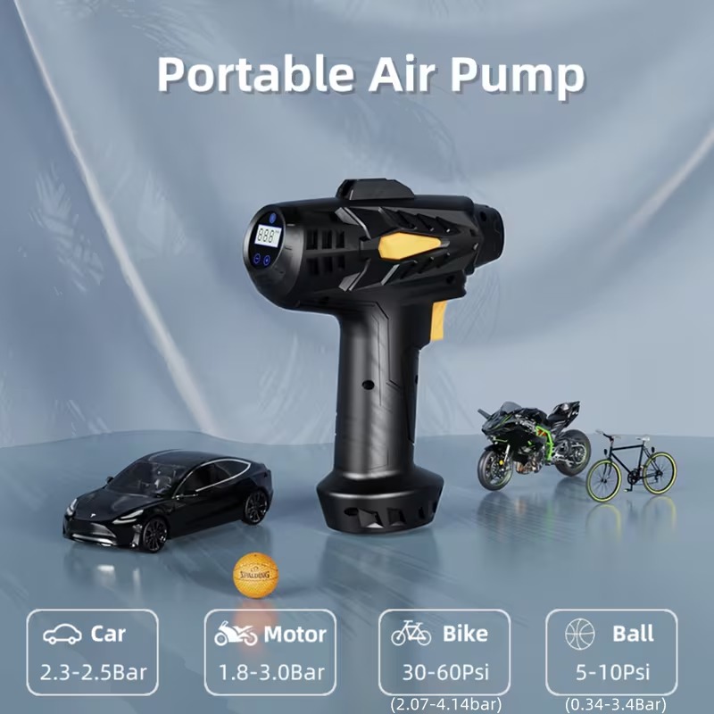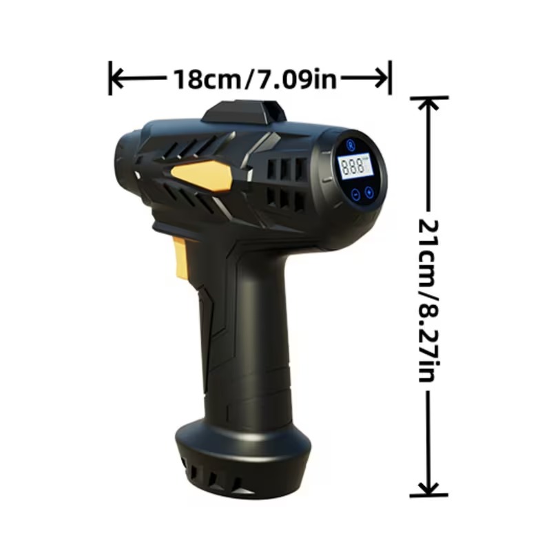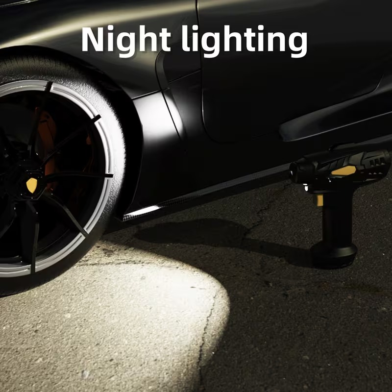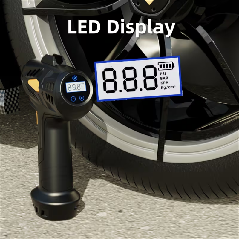 Built-in lighting + ergonomic grip design: 3. Digital Display Air Pump:
