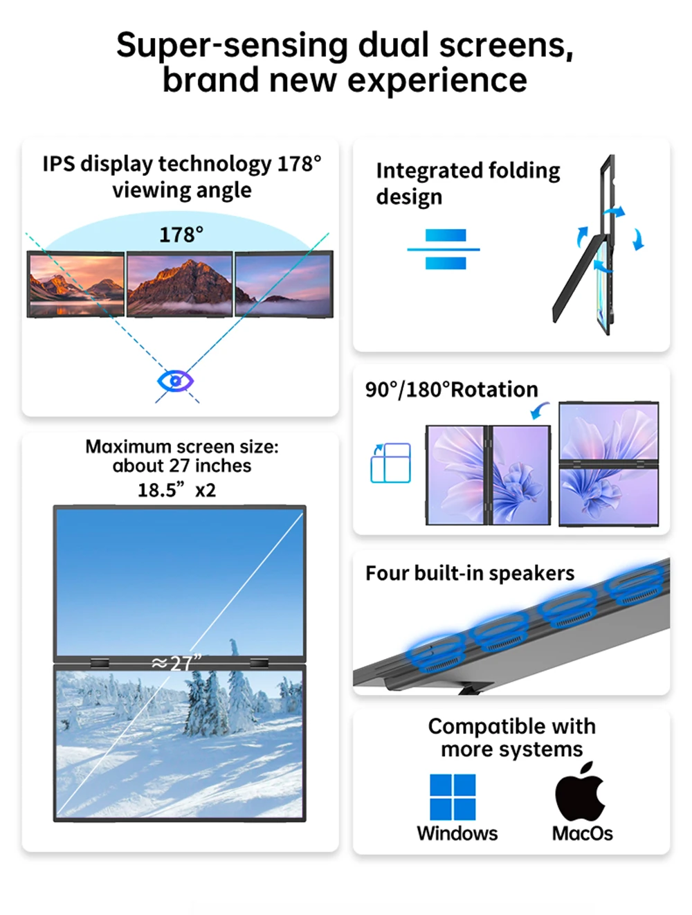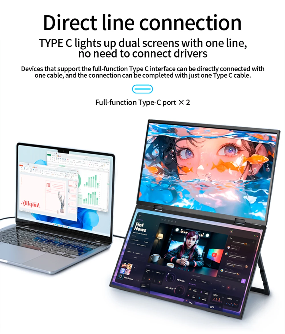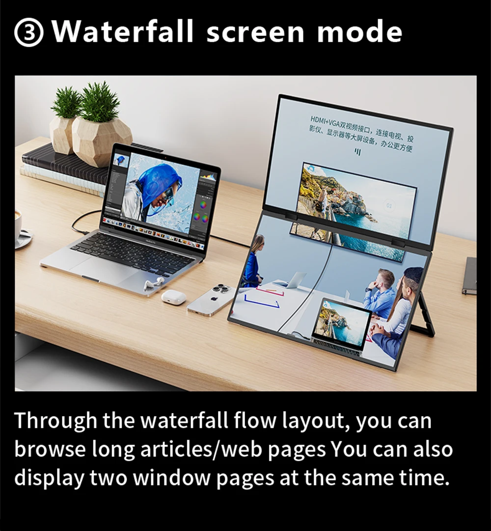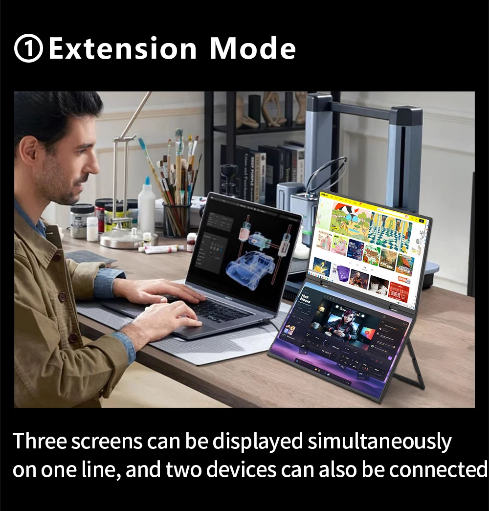 15.6″ Triple Screen Portable Monitor Set 120Hz, 100% SRGB, 1080P HDR – 360° Rotation, Folding Design Versatile Solution
