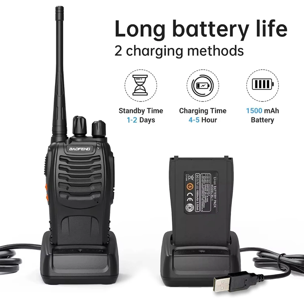 1PC/2PCS Baofeng 888S Walkie Talkie BF-888S 5W Ham Two-Way Radio Set UHF 400-470MHz 16CH Walkie-Talkie Transceiver USB Charger