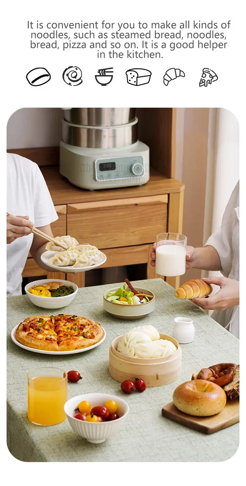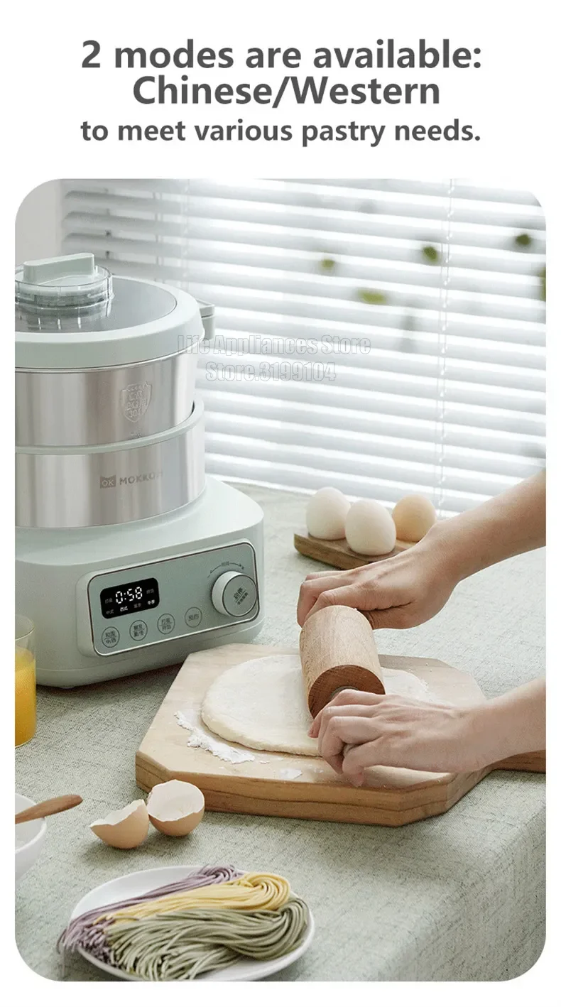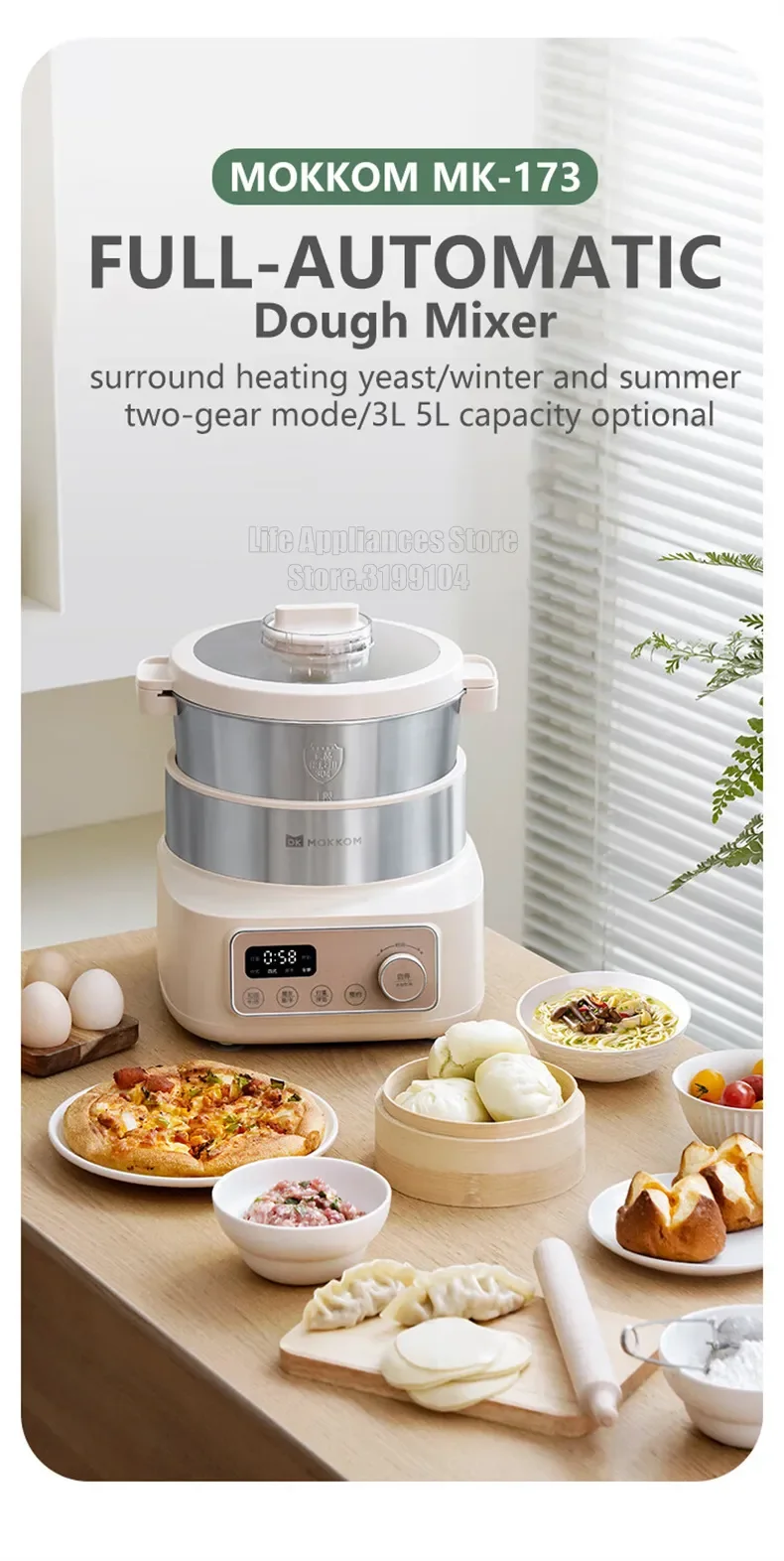 ●Mokkom multi-function dough machine, 3L/5L capacity optional, can put 0.5KG-2KG flour at a time, can be used to make dough, fermentation, convenient for you to make steamed buns, noodles, bread, pizza and other pasta, fully automatic, no need to supervise, 15 minutes to make smooth dough, with stirring accessories, can be stirred cream, egg white, minced meat, vegetable trap, etc., is your kitchen helper;