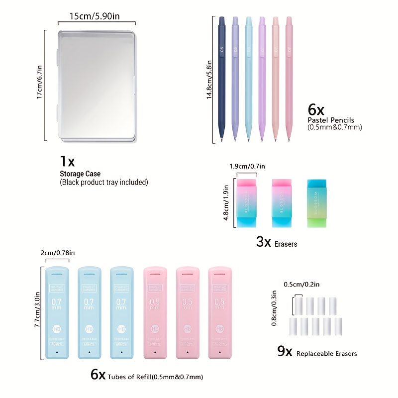 Be the first to review “[6pcs Mechanical Pencils Set] 6pcs Pastel Mechanical Pencils Set, 0.5mm, 0.7mm & 0.9mm | Four Candies Cute Mechanical Pencil | 360pcs Leads, 3pcs Erasers, 9pcs Eraser Refills, Aesthetic Pencils for Girls Writing, Art Drawing”