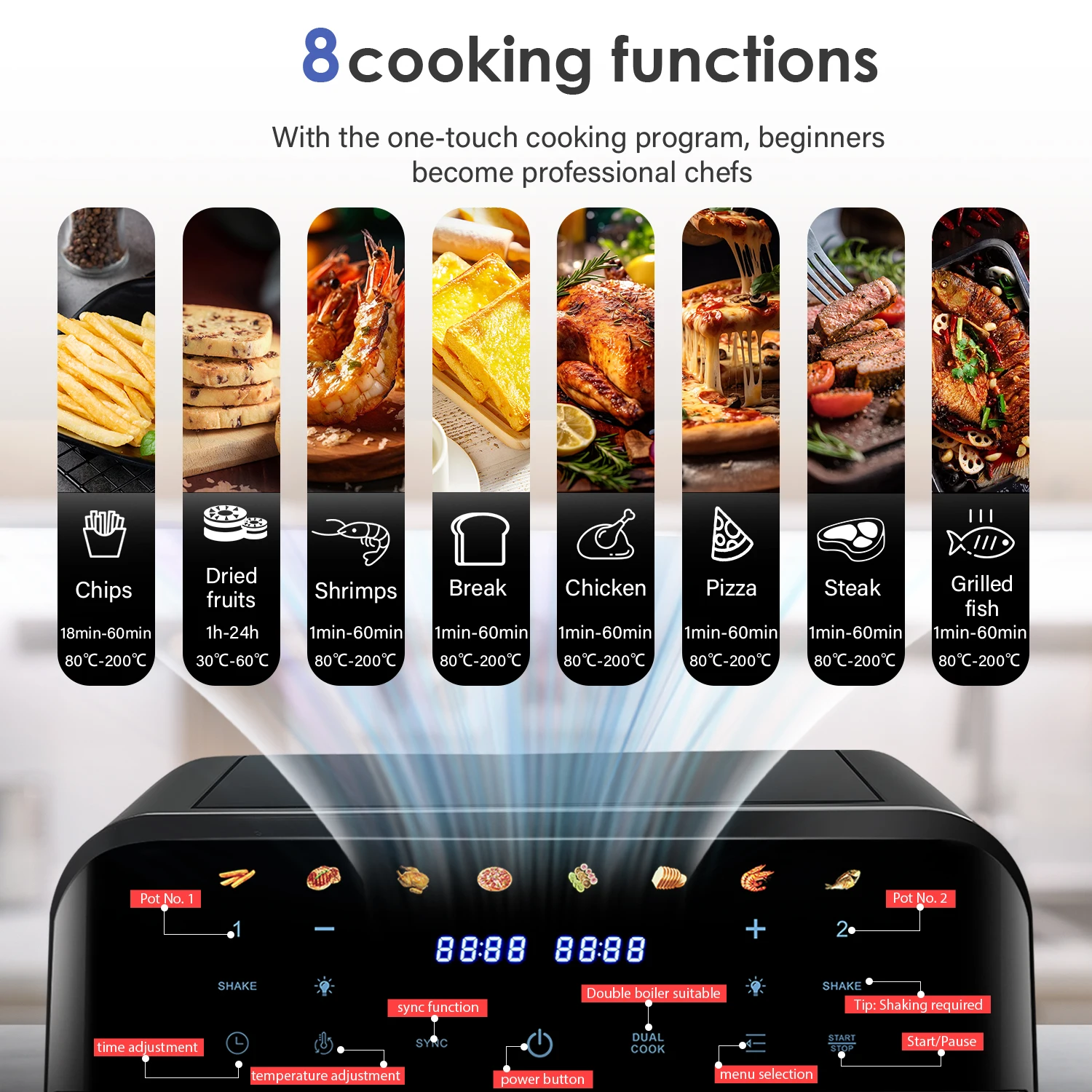 2400W Air Fryer with 9L Dual Basket Capacity】Compared to the standard,