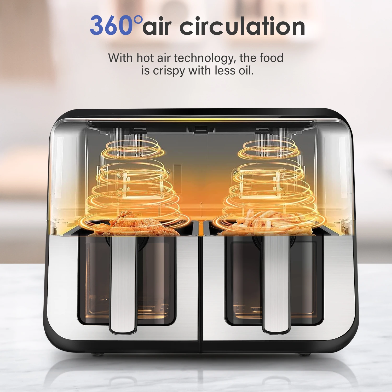 9Qt 8-in-1 Dual Air Fryer XXL with Viewing Window, Double Baskets, Sync Cook & Finish to Bake, Roast, Reheat, Dishwasher Safe