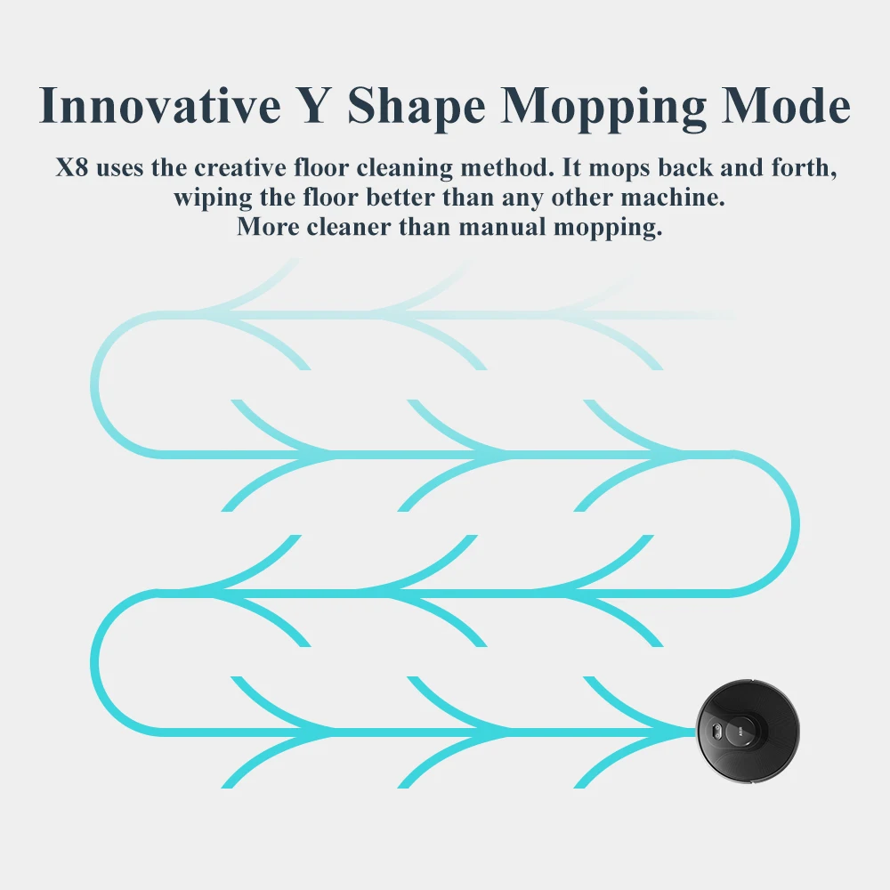2. Unique Algorithm Program for X8, First determine the boundary of the room, then figure out the most efficient cleaning route.Other brand only work in AI Normal Path. Low coverage than X8.