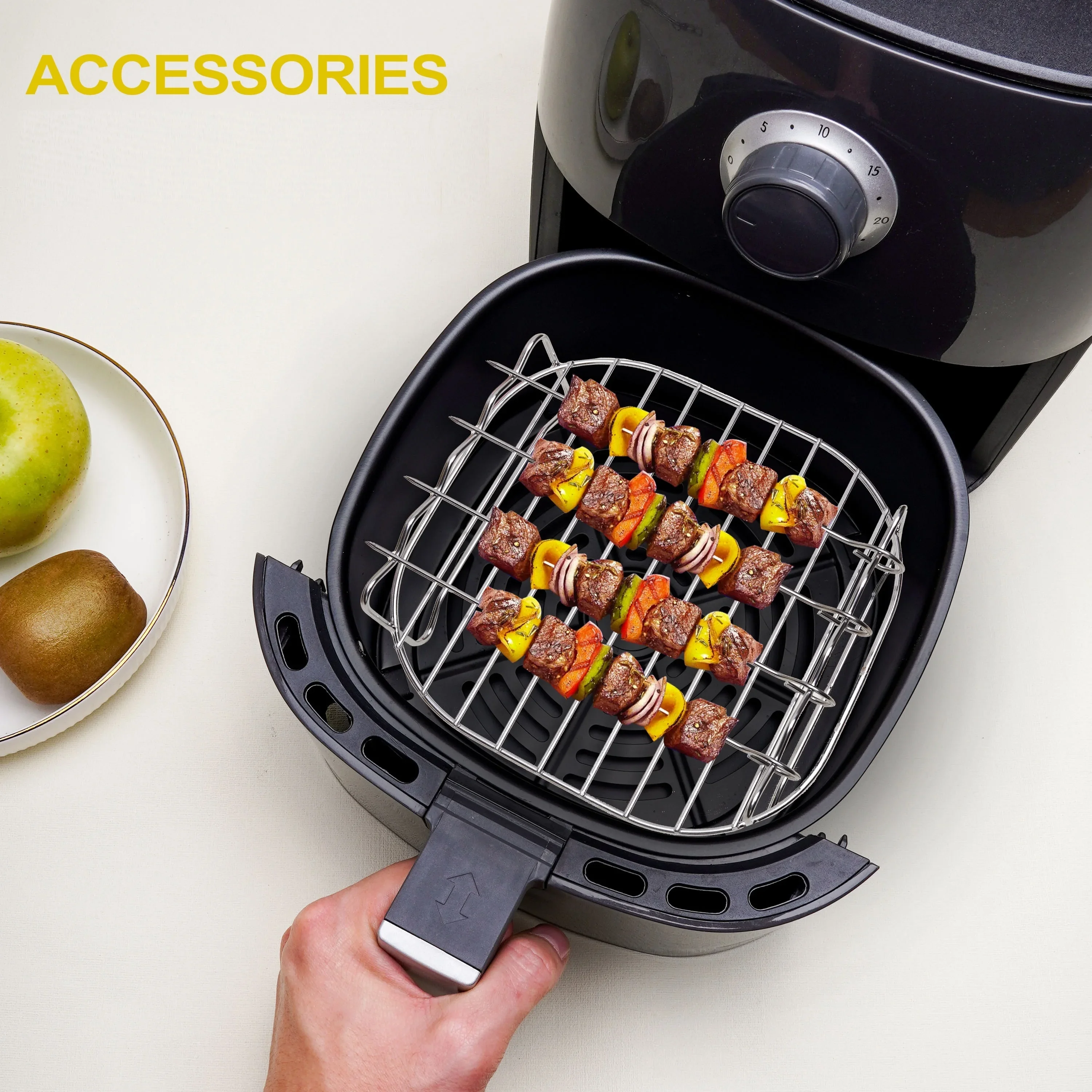 Double Layer Rack For More Versatile Air Fryer Recipes. Maximize The Heating Surface Of Food, Use Skewers For Shish Kabob On The Top Layer And Other Foods On The Grate Layer.