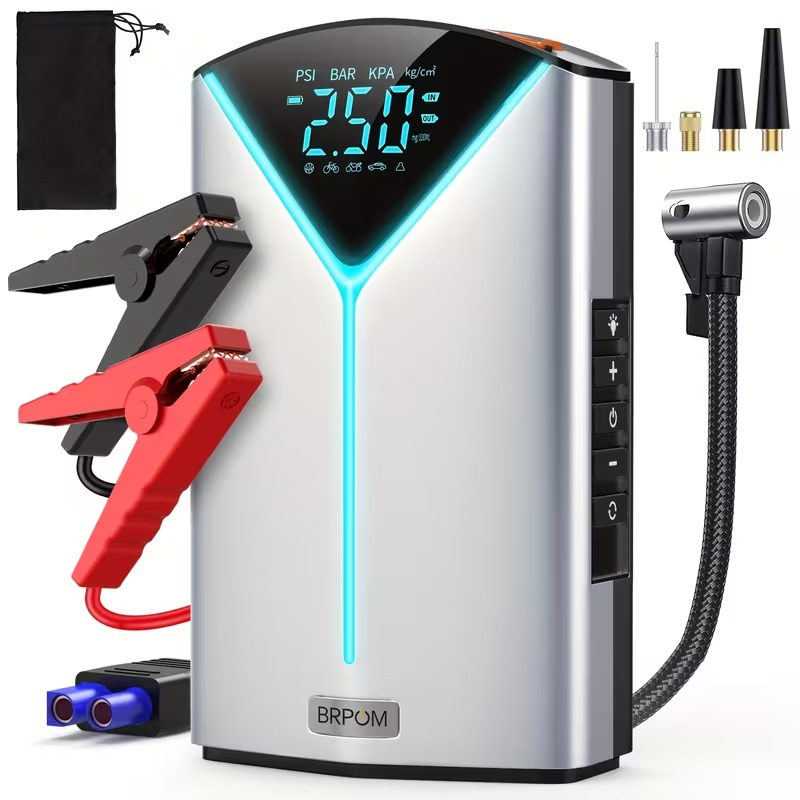 Be the first to review “BRPOM Jump Starter Power Bank with 150PSI Compressor, Booster Car Jump Starter with Large LCD Screen, 8500A Peak Power Battery Starter Power Bank for 8.5L Petrol And 8.0L Diesel, LED Light, Jump Starter Battery Pack with Air Compressor, Roadside Assistance Device, Vehicle Emergency Tool, Compact Design, Multifunctional Device, Efficient Power Supply, Reliable Battery Pack, Emergency Car Kit, Vehicle Maintenance, Road Trip Essentials”