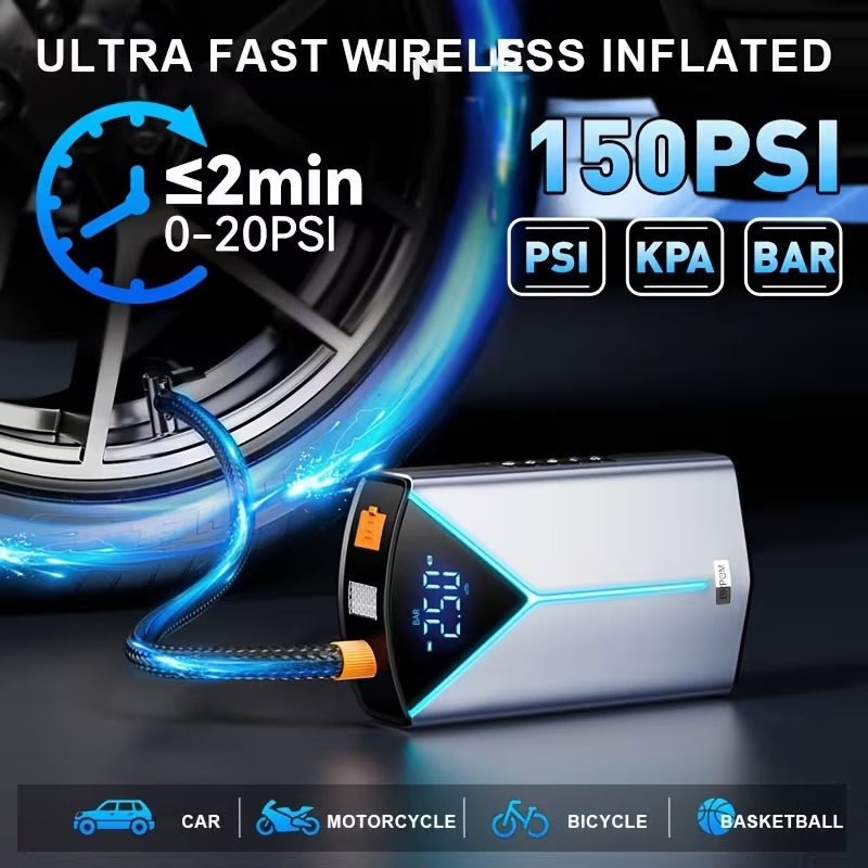 jump starter power bank with 150psi compressor booster car jump starter with large lcd screen 8500a power battery starter power bank for 8 5l petrol and 8 0l led light pack with air compressor device vehicle emergency tool multifunctional device power supply reliable battery pack emergency car kit vehicle maintenance road details 3