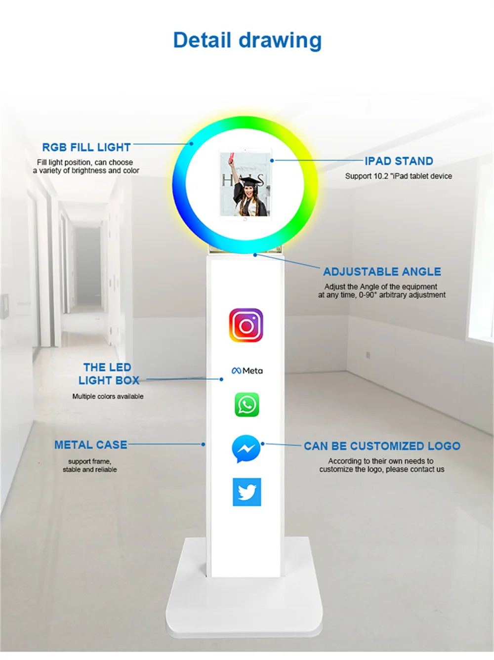 iPad Photo Booth Selfie Machine Shell Adjustable Stand Photobooth Customized LOGO With LED Ring Light For Wedding Partys Events