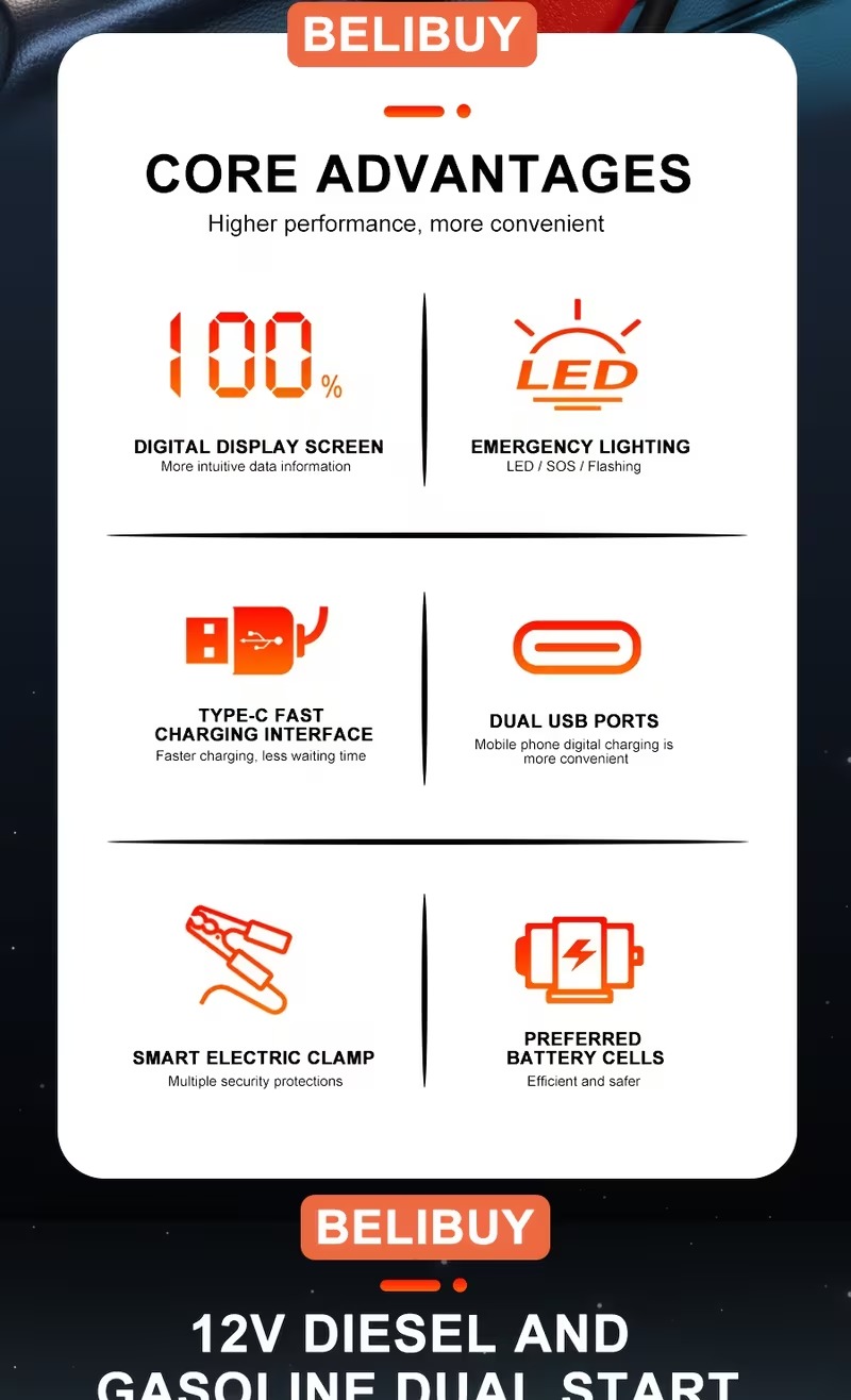 Be the first to review “Portable Car Emergency Starter – USB Charging, Rechargeable Battery, Emergency Power Supply, Black ABS Design, Suitable For Off-road Vehicles And Outdoor Adventures, Emergency Car Tool | Compact Emergency Device | Strong Structure”