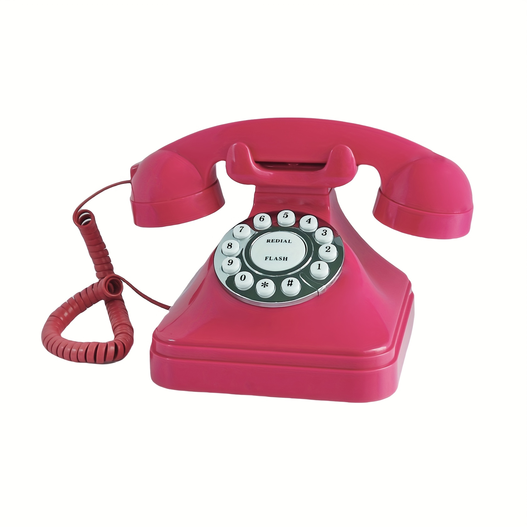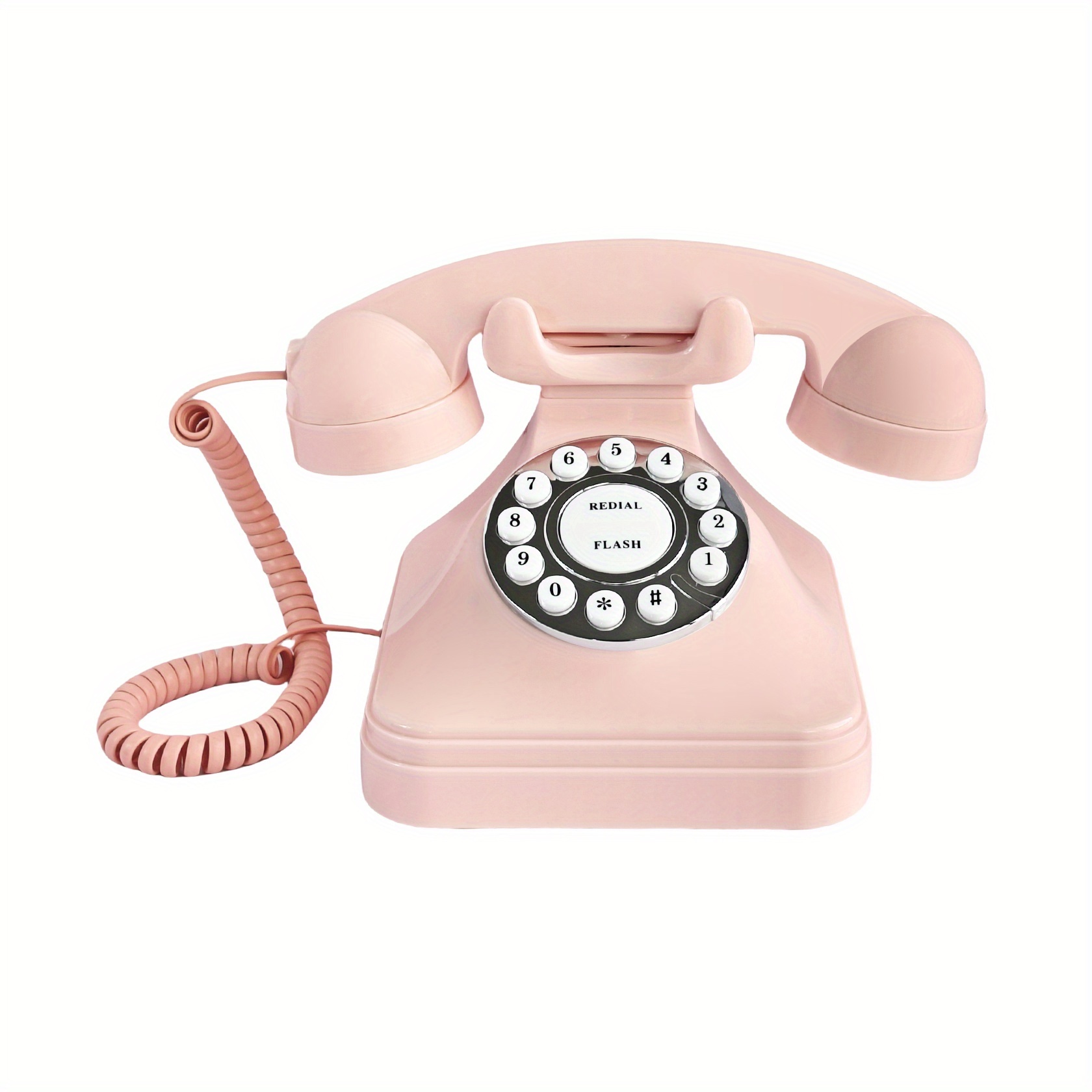Vintage 1930s Retro Landline Phone – Pink Plastic Antique Replica with Redial, Classic Design for Home, Office, Hotel – Perfect for Vintage Enthusiasts, Collectors, and Photography – Includes Speakers & Car Charger, Vintage Phone Accessories, Office Equipment, Durable Construction, Highquality Material