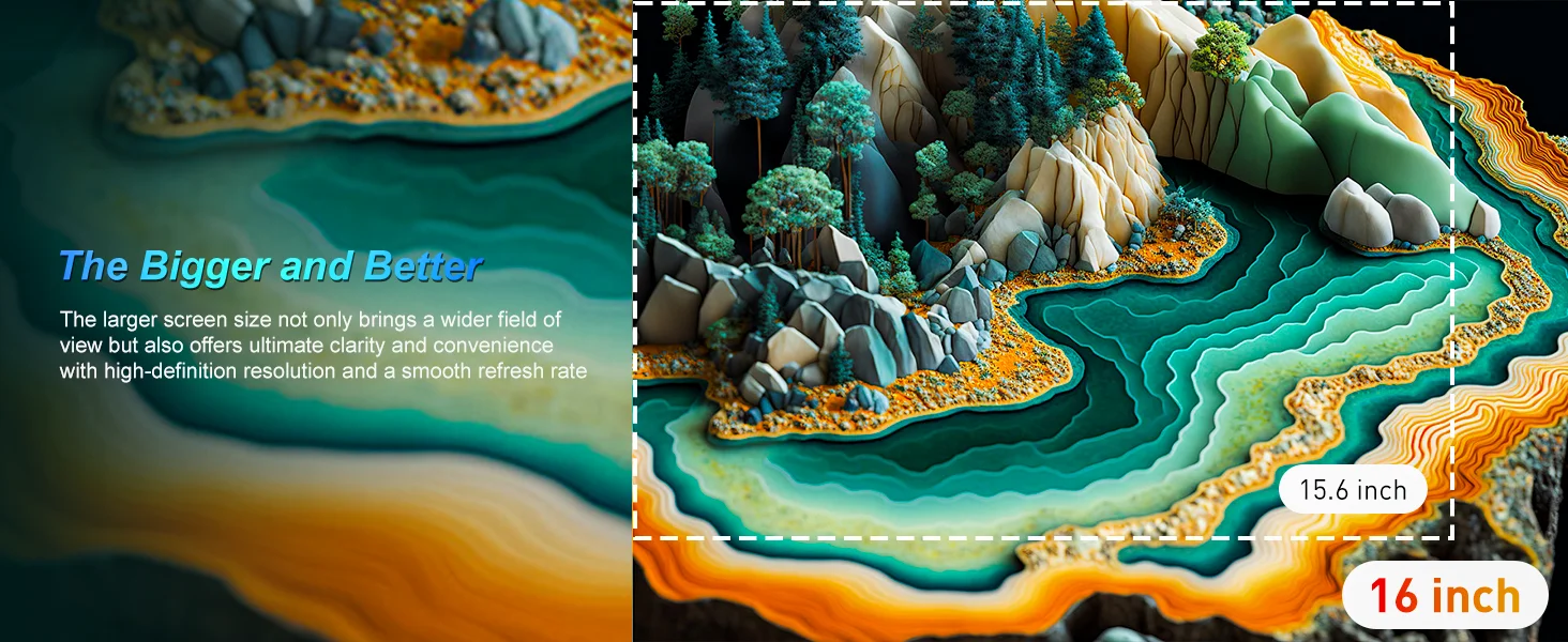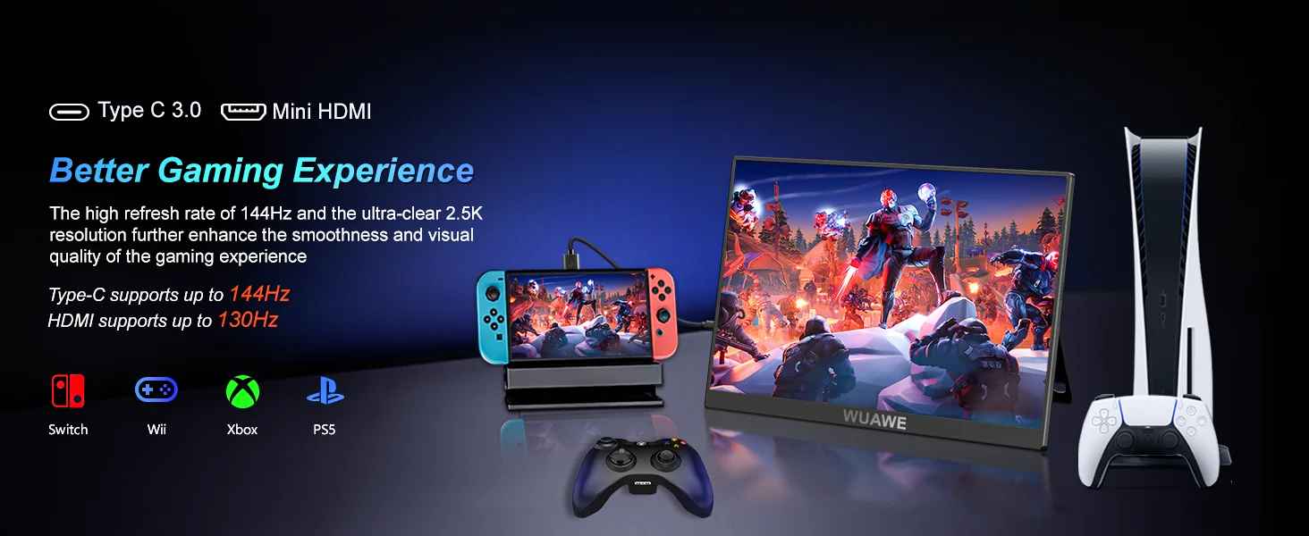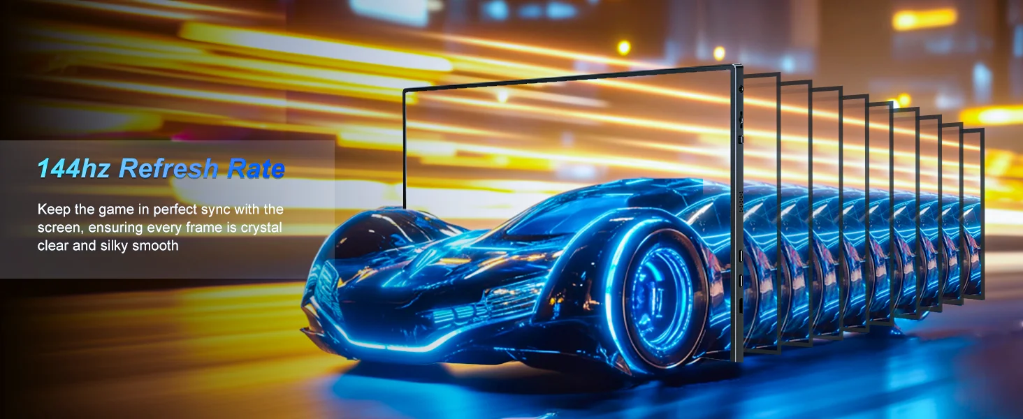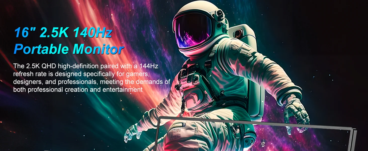 • 🌈 Portable Gaming Monitor: Discover the ultimate portable gaming experience with our 2.5K 2560*1600 144Hz refresh rate portable monitor, designed to elevate your gaming to new heights. Boasting a 16:10 aspect ratio, brightness 300cd/m², our portable screen ensures exceptional visuals and brighter than ever before. Our external gaming monitor supports 72% NTSC/100% sRGB, delivering brilliant, color-accurate images. Perfectly sized for portability, it’s a game-changer for those on-the-go.