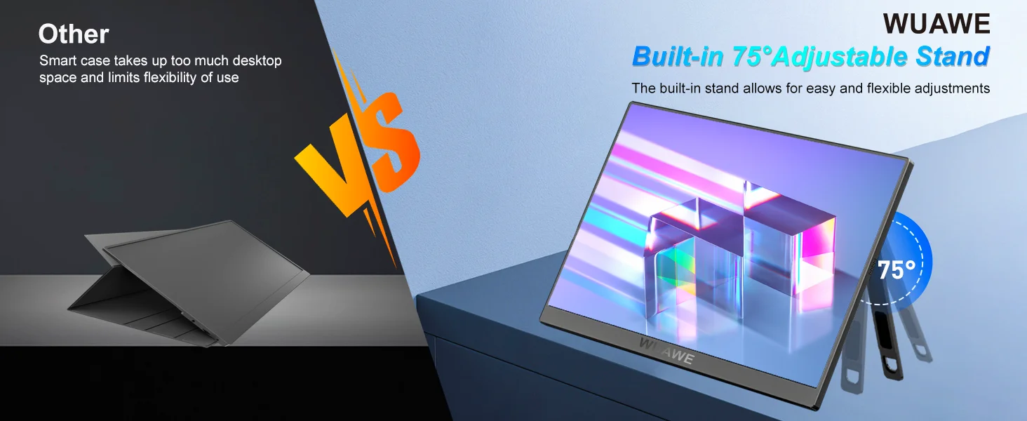 • 🌈 HARDWARE STAND : Our portable external monitor is included with a hardware stand with multiple adjustable angles. Whether you are working on the go or setting up a temporary workspace, our portable monitors are the perfect companion.
