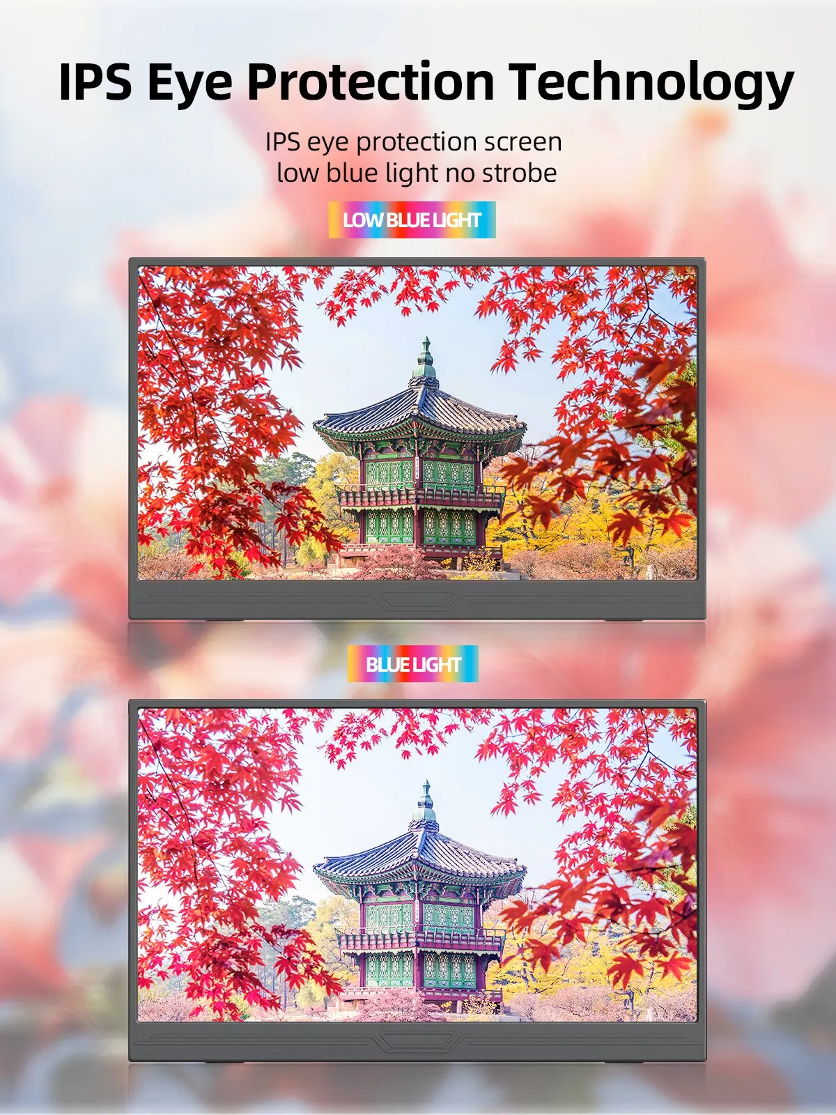 • Portable Design :The 15.6-inch size and lightweight design of this portable monitor make it easy to carry around, perfect for on-the-go use.